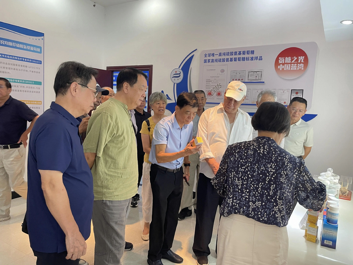 当日,老干部们来到海沧区蓝湾科技有限公司展厅,听取工作人员的细致讲解,了解了园区的整体布局、发展定位以及尖端产品。在蓝湾海洋多糖展示区,工作人员重点介绍了蓝湾科技有限公司在壳寡糖、壳聚糖、硒化卡拉胶等创新药物研发领域的技术突破和产品应用。老干部们不时驻足观看,与工作人员亲切交流,详细询问企业的研发投入、市场前景、产品功效等情况,对海洋多糖产业的快速发展和取得的成就表示高度赞赏。他们纷纷表示,通过此次参观,不仅直观感受到海沧区在生物医药产业发展上的强劲势头和广阔前景,也深刻体会到区委区政府在推动产业高质量发展方面所做的努力。
