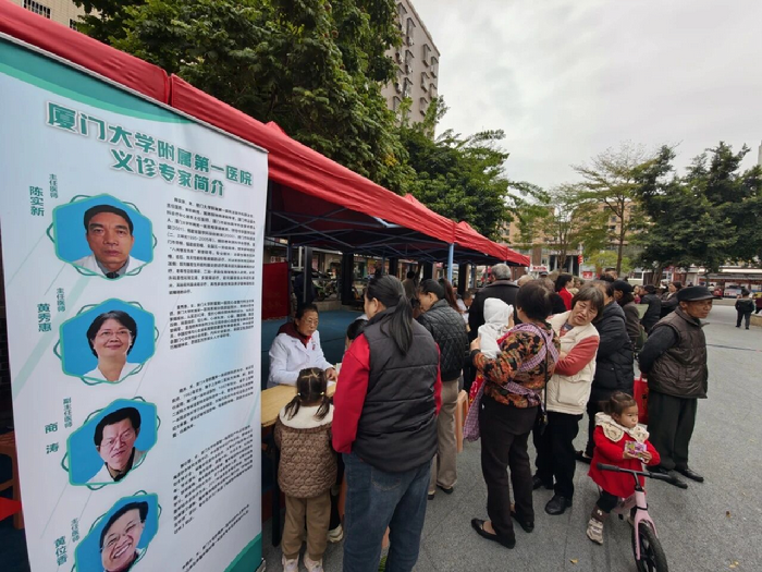 义诊区域人头攒动。来自厦门大学附属第一医院的“银发专家”和科宏眼科医院的医护人员正耐心为居民提供诊疗服务。“您的血压控制得不错,但天冷要注意保暖。”心血管科老专家黄主任仔细叮嘱着。她表示:“作为退休医生,能继续用专业知识服务社区群众,看到他们信任的笑容,就是最大的价值。”眼科团队为多位老人筛查出白内障等眼疾,并提供了详细的就医指导。