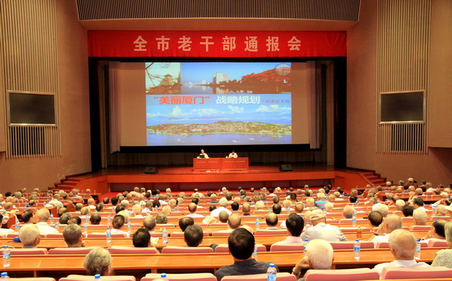 9月5日下午,全市老干部通报会在厦门人民会堂举行。市委常委、常务副市长林国耀主持会议并讲话,市规划局局长赵燕菁向老干部通报《美丽厦门战略规划》情况,全市和在厦省部属单位离退休干部代表700余人参加。
