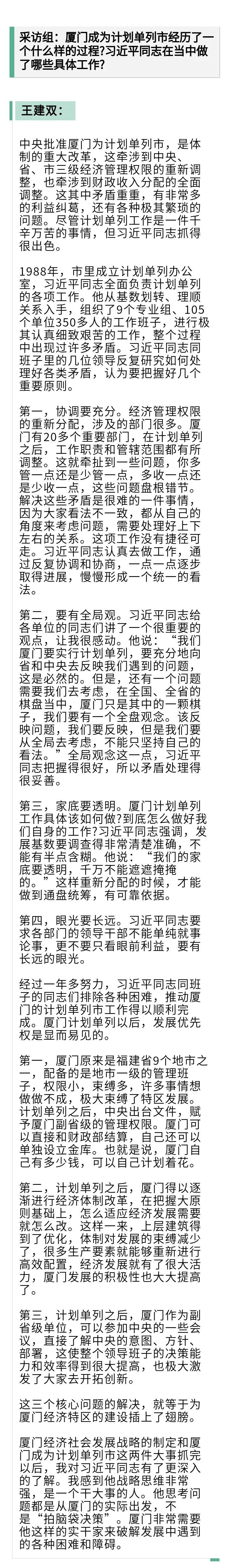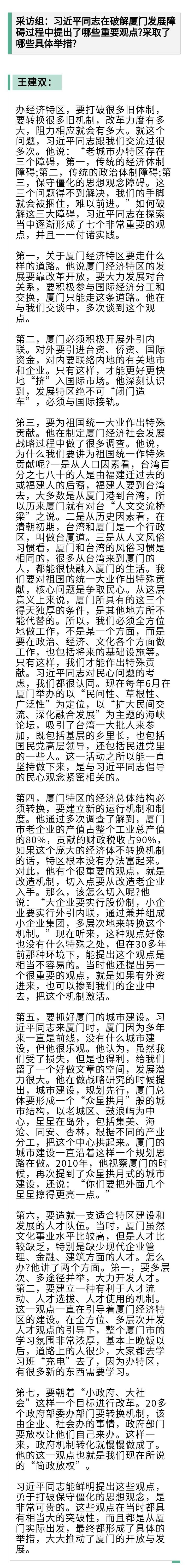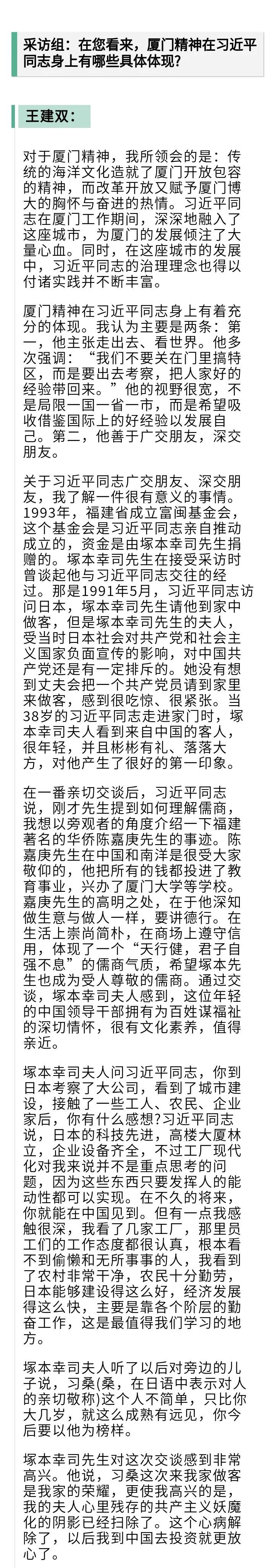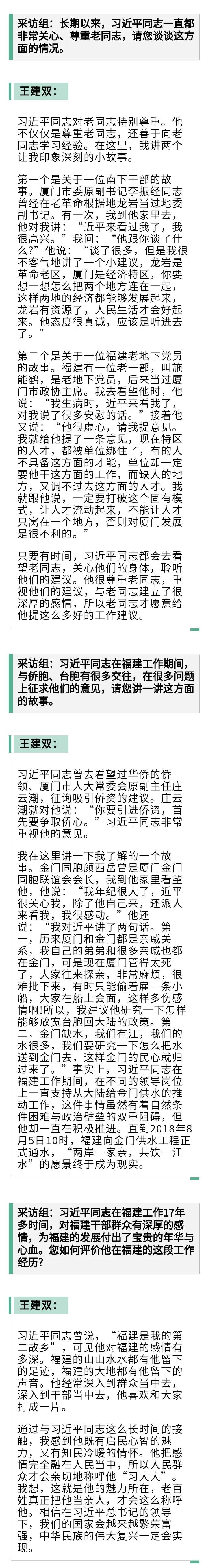 采访对象:王建双,1936年12月生,福建翔安人。曾任福建省轻工业厅副厅长、厅长,1987年任厦门市委书记,1990年任福建省委常委、组织部部长,1993年任省政府常务副省长,1998年任省人大常委会副主任,2003年任全国人大华侨委员会副主任委员。2009年退休。