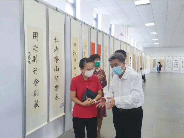市关工委主任陈炳发,市关工委第一副主任黄杰成,市关工委副主任陈佳鹏、赖菡,市教育局副局长吴雪慧,市教育系统关工委常务副主任林英杰等领导出席19日书法作品展开幕式。