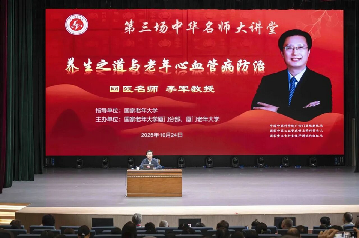 本次讲座由国家老年大学指导,国家老年大学厦门分部、厦门老年大学、厦门老干部大学共同主办,延续了中华名师大讲堂“汇聚名师、服务学员”的创办初心,展现了厦门老年大学对老年群体身心健康的高度重视,通过搭建与国医名家面对面交流平台,助力老年朋友掌握科学养生知识,提升健康自护能力,在传承中医文化精髓的同时,积极践行“健康老龄化”理念,让银龄岁月在中医智慧的滋养中焕发从容光彩。