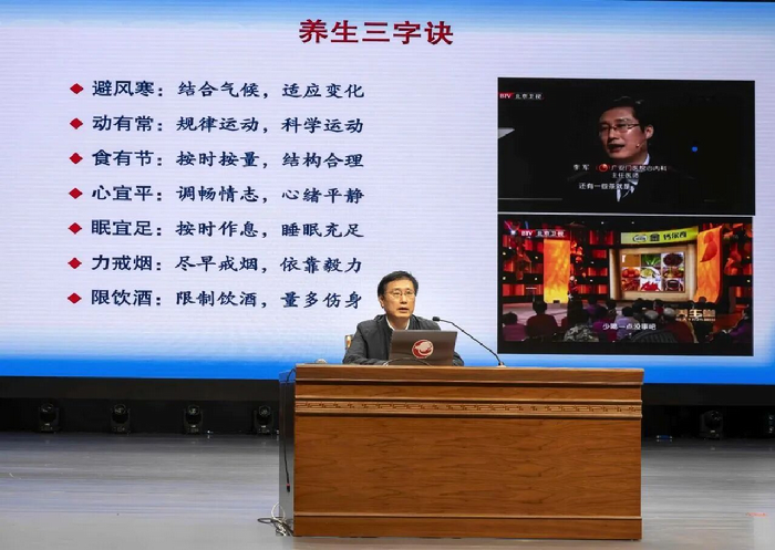 讲座中,李军教授从“养生”的传统文化内涵出发,引经据典,阐释“养生即颐寿”的中医生命观。他围绕“天人合一”“形神合一”的中医核心理念,结合现代医学观点,系统讲解了心血管疾病的成因与防治策略。针对老年群体特点,重点分享了通俗实用的“养生三字诀”——“避风寒、动有常、食有节、心宜平、眠宜足、力戒烟、限饮酒”,并逐条作了细致解读。