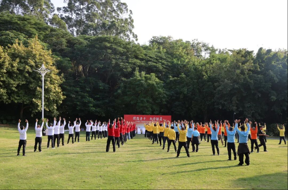 沉肩坠肘,气沉丹田,含胸拔背!大家通过形、神、气的紧密配合,将八段锦的健身精神融入每个动作,一招一式尽显厦门老干人的“精气神”!