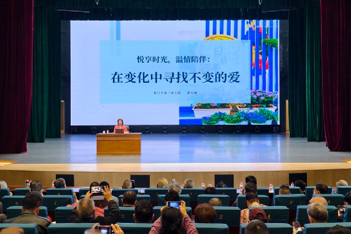 12月18日上午,由厦门市委老干部局、厦门老干部大学、厦门老年大学、厦门市老干部党校共同举办的隔代教育讲座在厦门老年大学举行。市委离退休干部工委专职副书记黄光华主持讲座。厦门市第一幼儿园园长、特级教师姚莉娜作《悦享时光,温情陪伴:在变化中寻找不变的爱》专题分享。全市近400名离退休干部、离退休干部党支部书记及老年大学学员代表等参加。