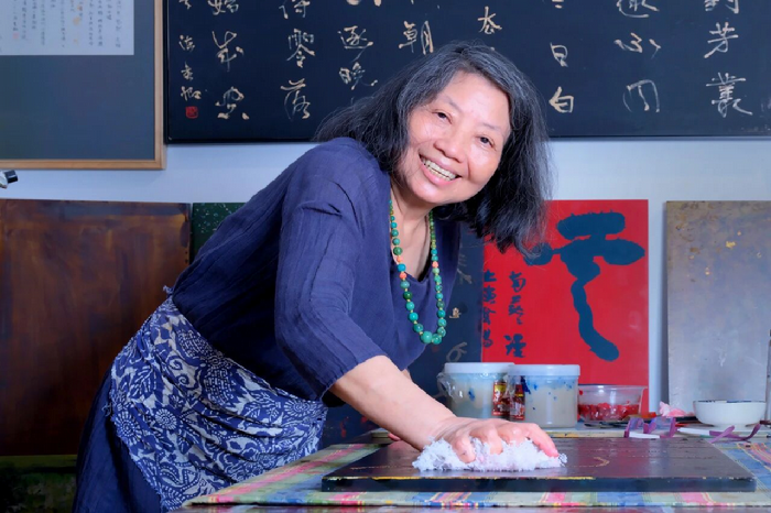 画有工笔、写意、水彩、山水等多种,书法为何不可以多形式拓展呢?于是,在探寻刻书艺术之上,她再次大胆尝试。从此,便有了她为人称道,享誉书坛的漆书艺术成就。