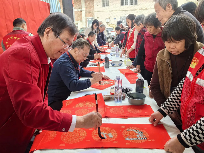 活动现场,老干部艺术家展纸挥毫,笔走龙蛇,一副副寓意吉祥、充满年味的春联和一个个风格各异的“福”字跃然纸上,吸引了众多村民驻足欣赏、争相领取。“这手写的春联比印刷的有味道多了,看着就喜庆!”村民颜大爷捧着墨迹未干的春联,脸上洋溢着笑容。红纸黑字间,不仅传递着传统文化的韵味,更承载着对乡村百姓的新春美好祝愿。