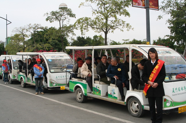 厦门园博苑为特困老人免费提供志愿导游和观光电瓶车